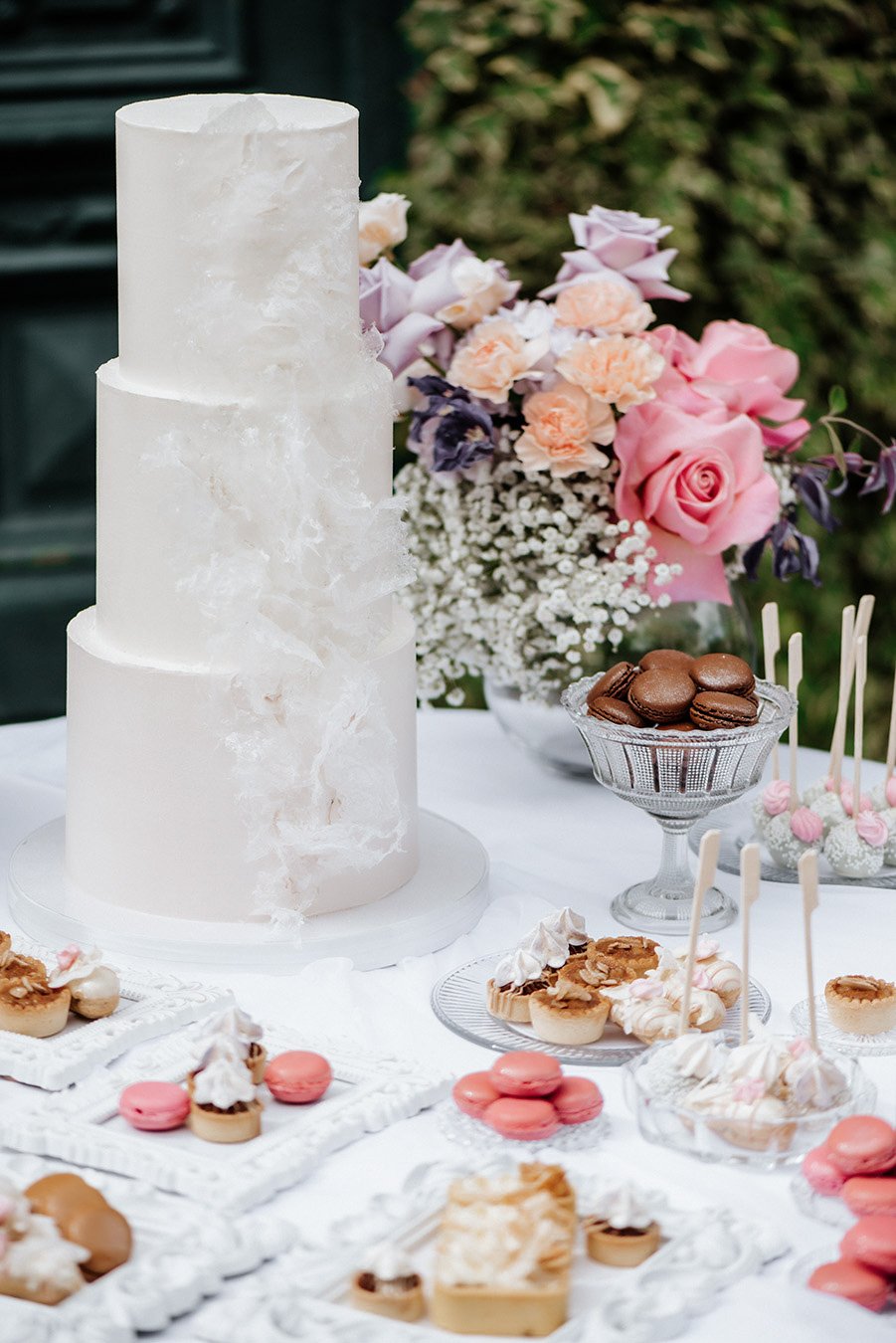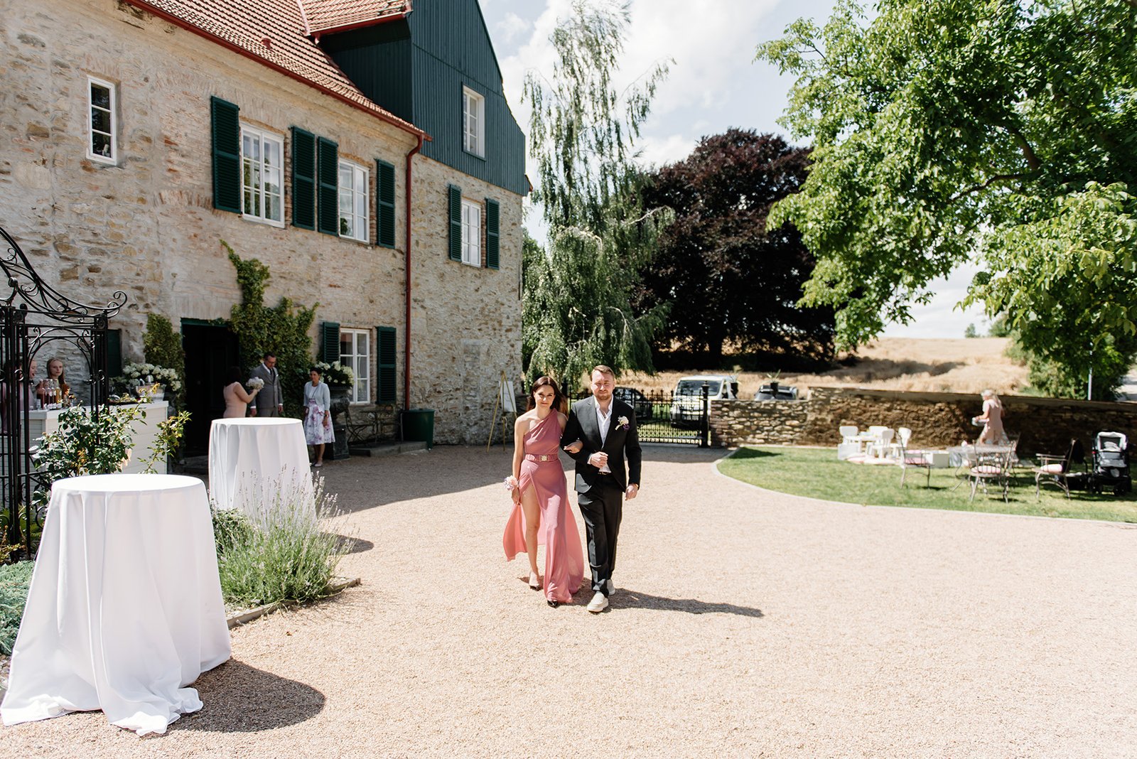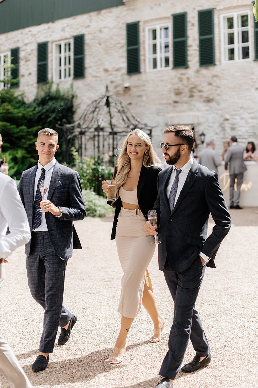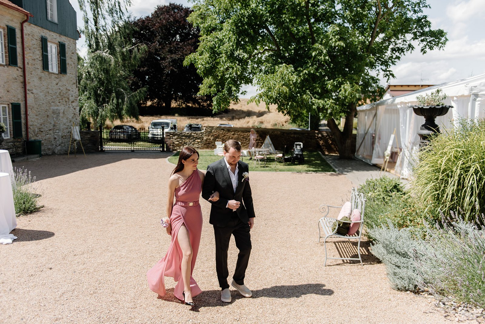 Po oficjalnej części goście zostali zaproszeni na elegancki furszet w ogrodzie. Stoły pełne smakowitych dań, rozmowy i śmiech – to wszystko tworzyło niepowtarzalny klimat tej uroczystości. Uwielbiam rejestrować takie momenty, gdy ludzie mogą cieszyć się sobą i celebrować miłość nowożeńców.