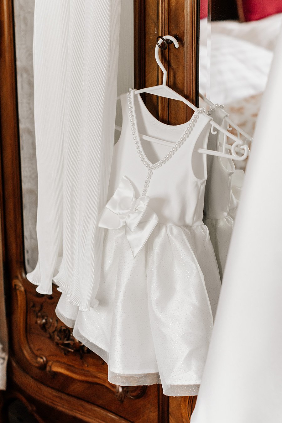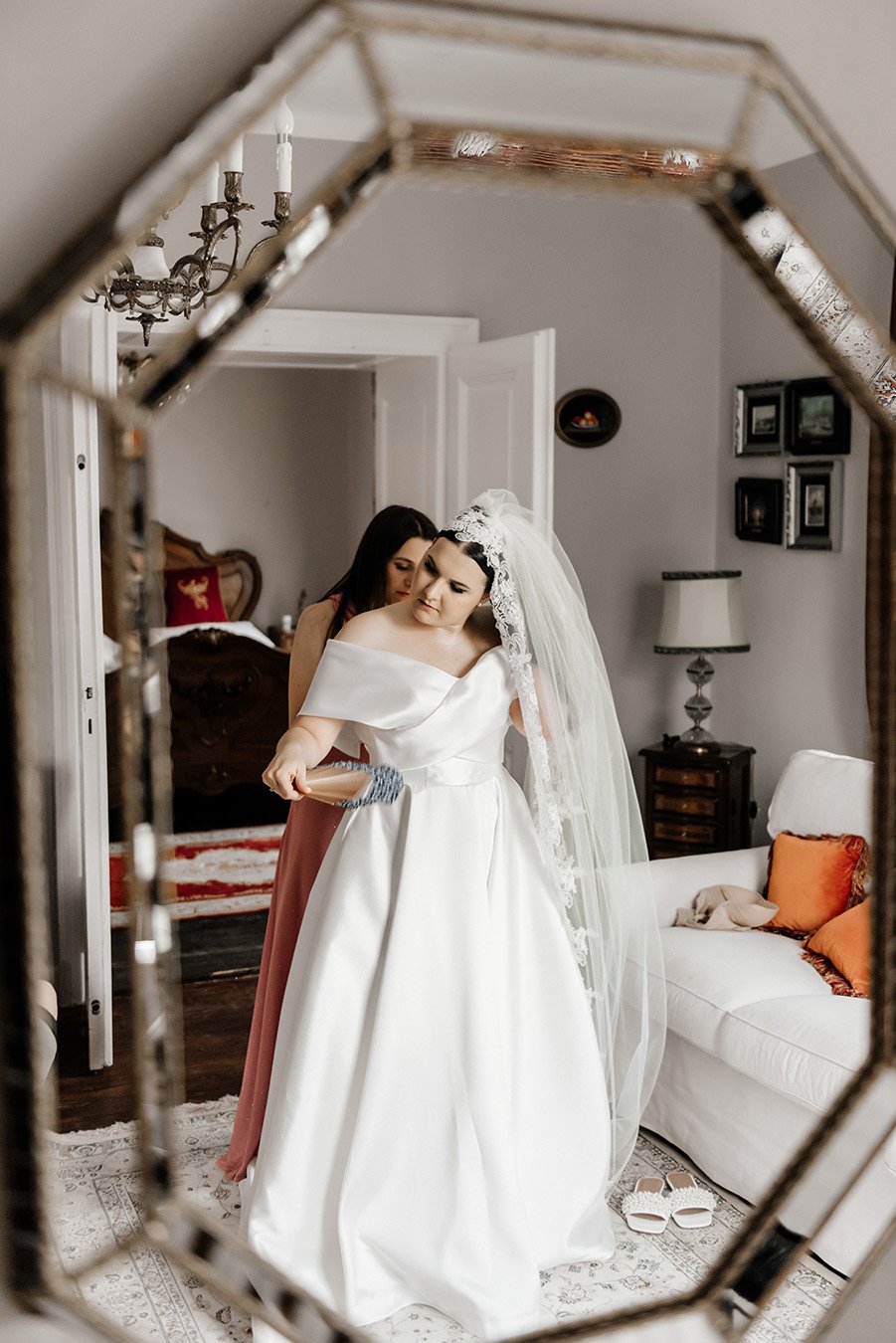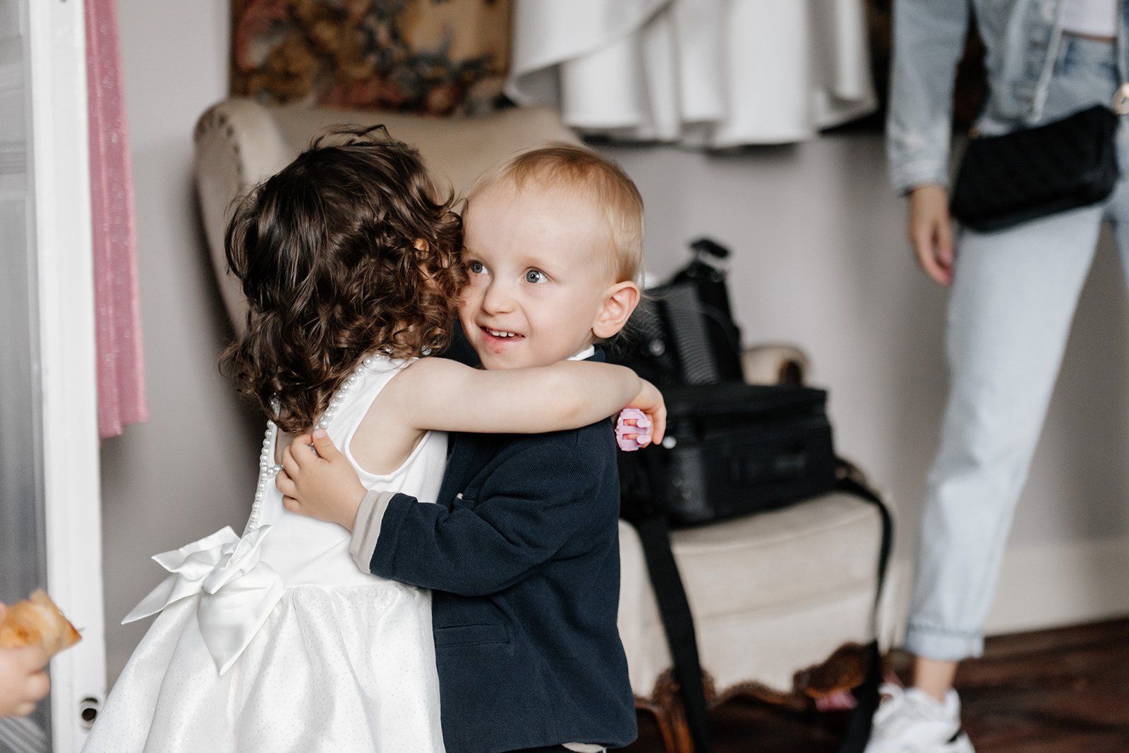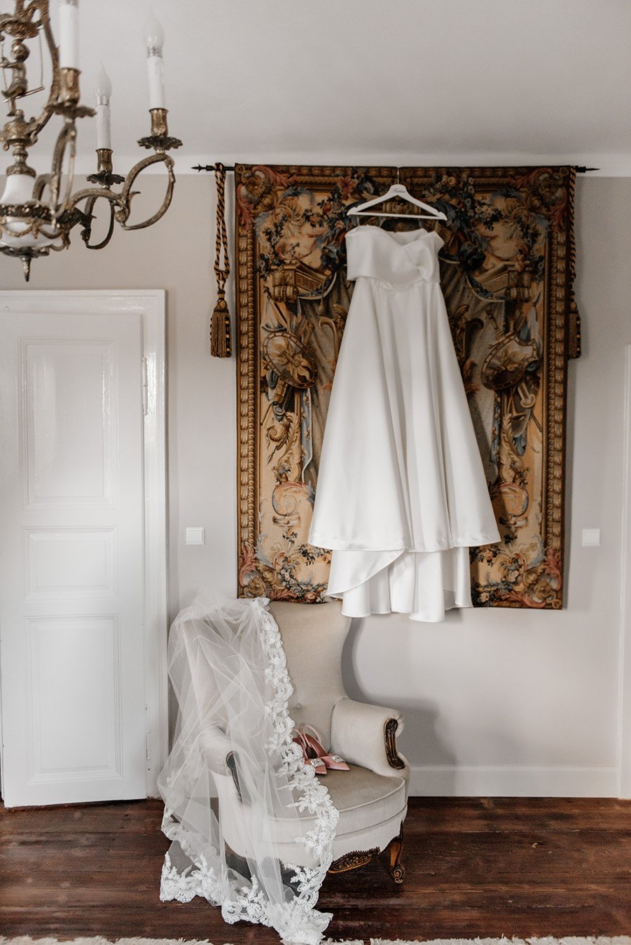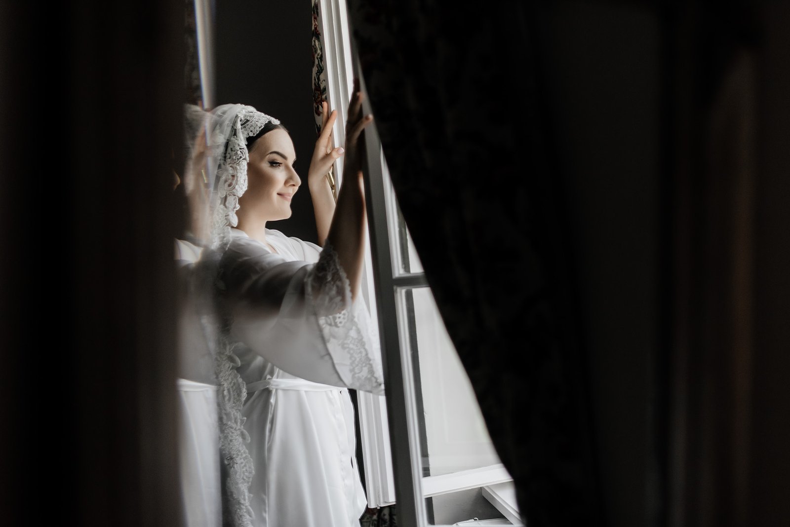 Zawsze cenię szczególne chwile przed ceremonią. Kristina otoczona druhnami przygotowywała się w eleganckim apartamencie, gdzie panowała radosna atmosfera. W jej oczach widać było ekscytację i wzruszenie. Fryzjerka i makijażystka dbały o każdy detal, aby podkreślić jej naturalne piękno. Suknia ślubna wisiała na wieszaku, czekając na ten podniosły moment.