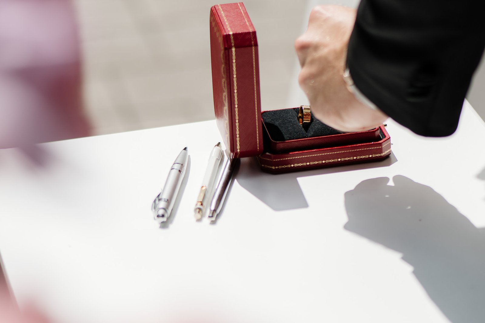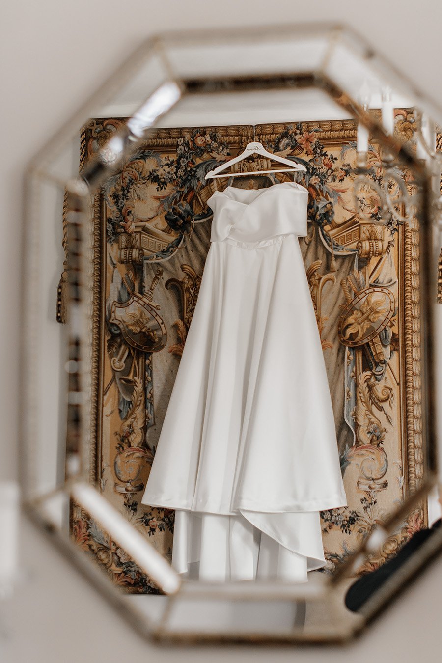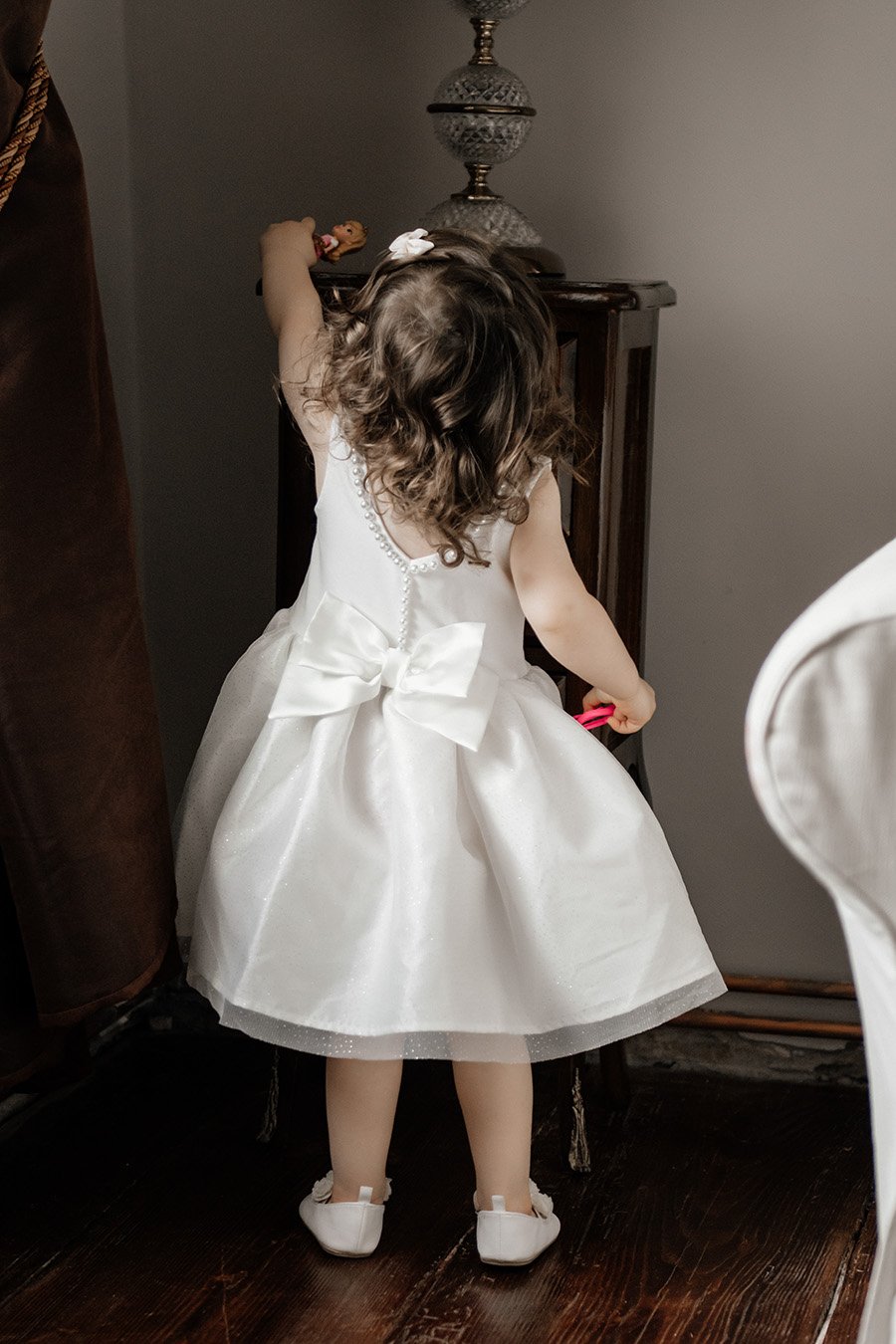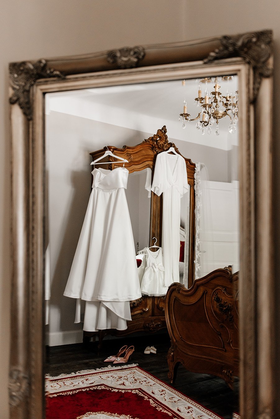 Zawsze cenię szczególne chwile przed ceremonią. Kristina otoczona druhnami przygotowywała się w eleganckim apartamencie, gdzie panowała radosna atmosfera. W jej oczach widać było ekscytację i wzruszenie. Fryzjerka i makijażystka dbały o każdy detal, aby podkreślić jej naturalne piękno. Suknia ślubna wisiała na wieszaku, czekając na ten podniosły moment.