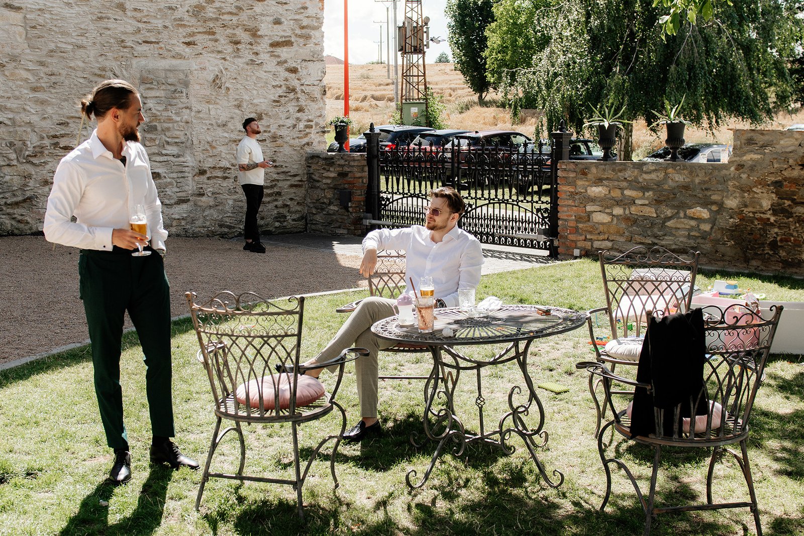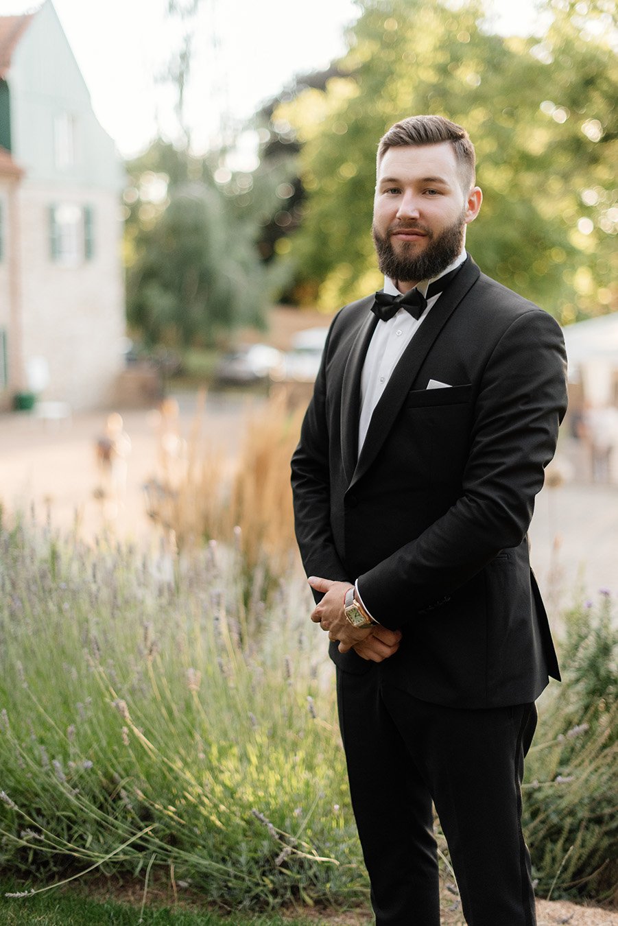 David natomiast spędzał czas z drużbami, dzieląc się anegdotami i śmiechem. Przygotowania przebiegały w luźnej atmosferze, pełnej żartów i pozytywnej energii. Elegancki garnitur, dopasowane dodatki i ostatnie poprawki – każdy szczegół miał znaczenie. Towarzyszyła temu lekka ekscytacja i radość z nadchodzącego wielkiego dnia.