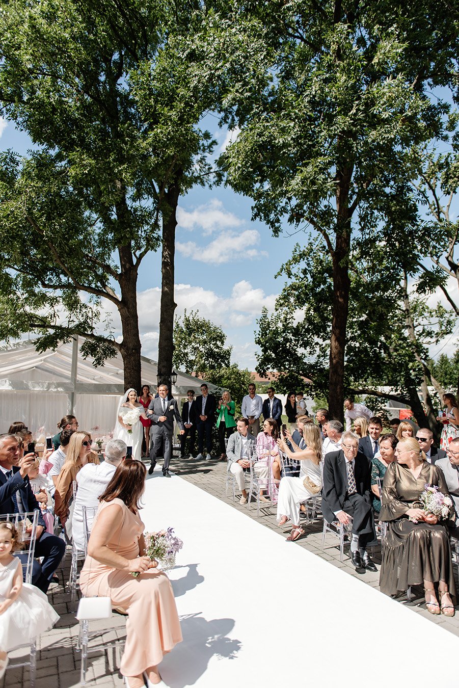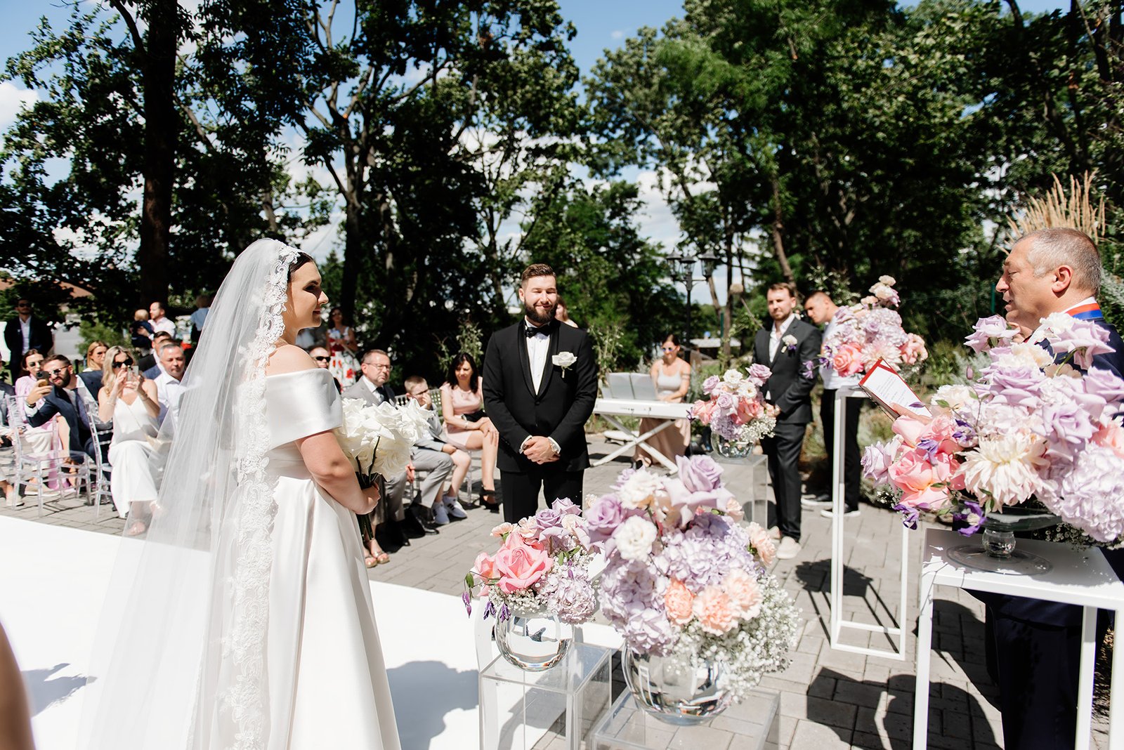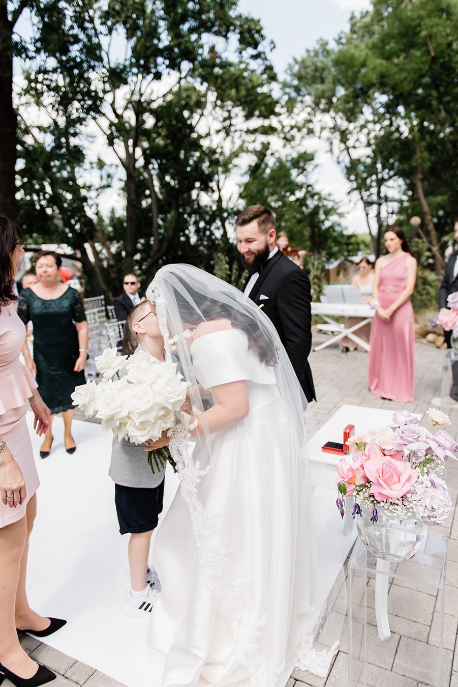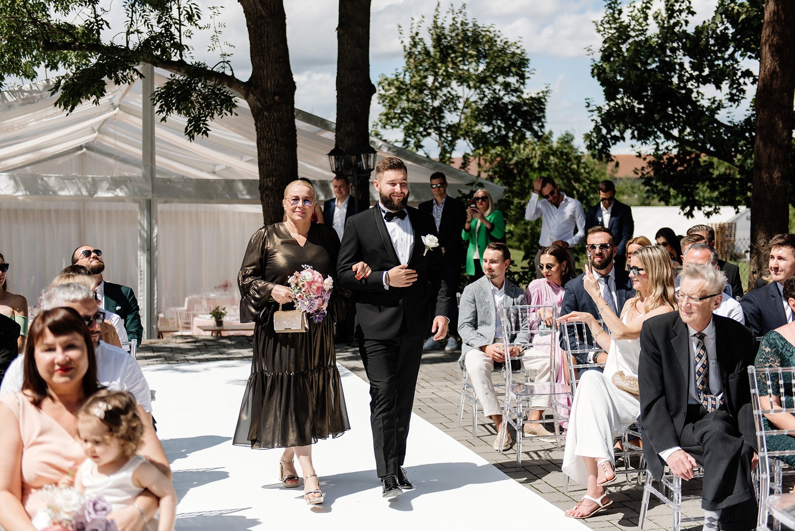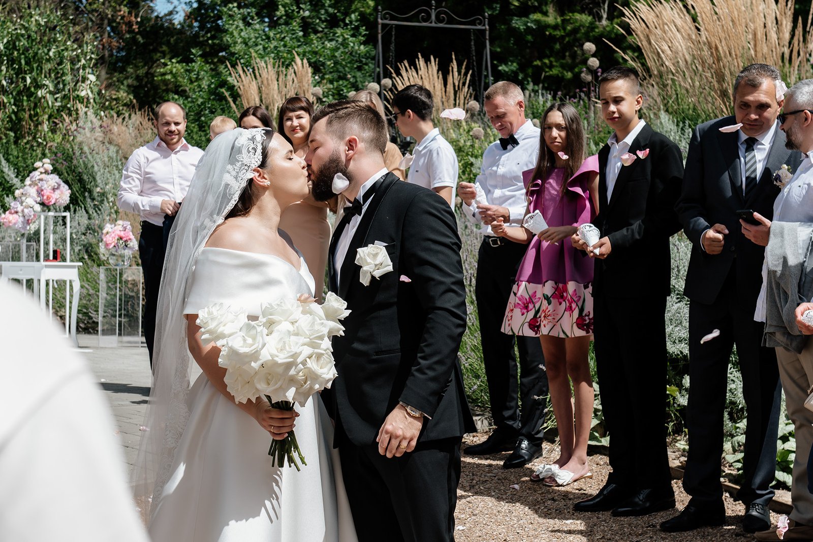 Miejsce ceremonii było jak z bajki – piękna sceneria ogrodu, delikatne dekoracje i ciepłe sierpniowe światło tworzyły magiczną atmosferę. Kristina, prowadzona przez ojca, wzruszyła wszystkich gości. Przysięga wypowiedziana wśród zieleni i kwiatów sprawiła, że każdy poczuł magię tej chwili. Uwielbiam uchwycić te ulotne momenty pełne prawdziwych emocji.