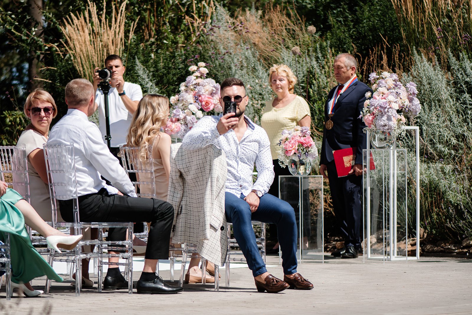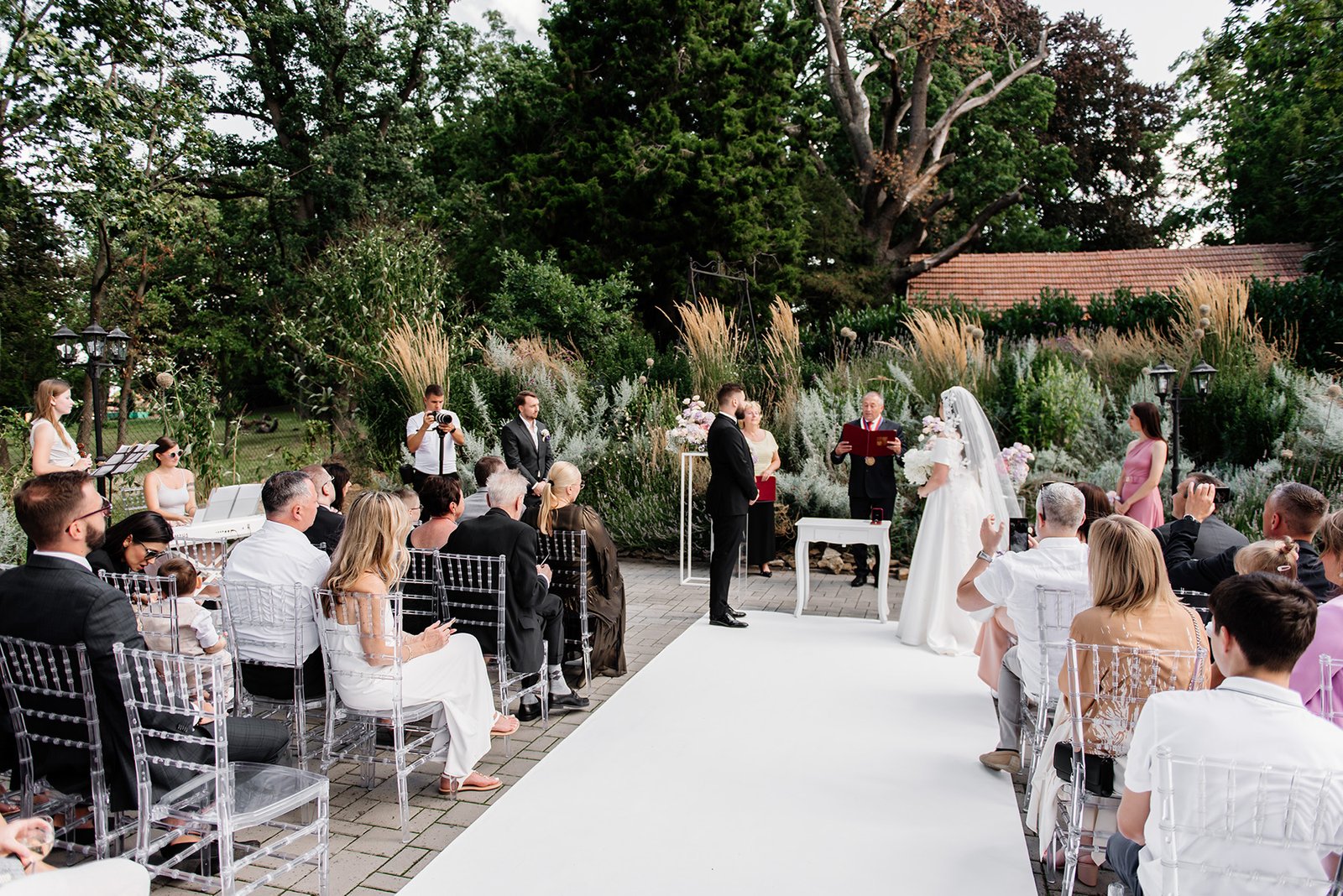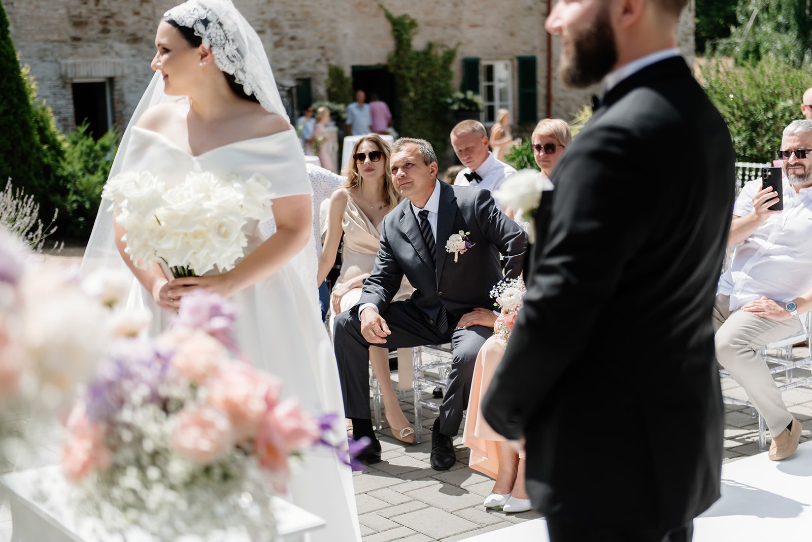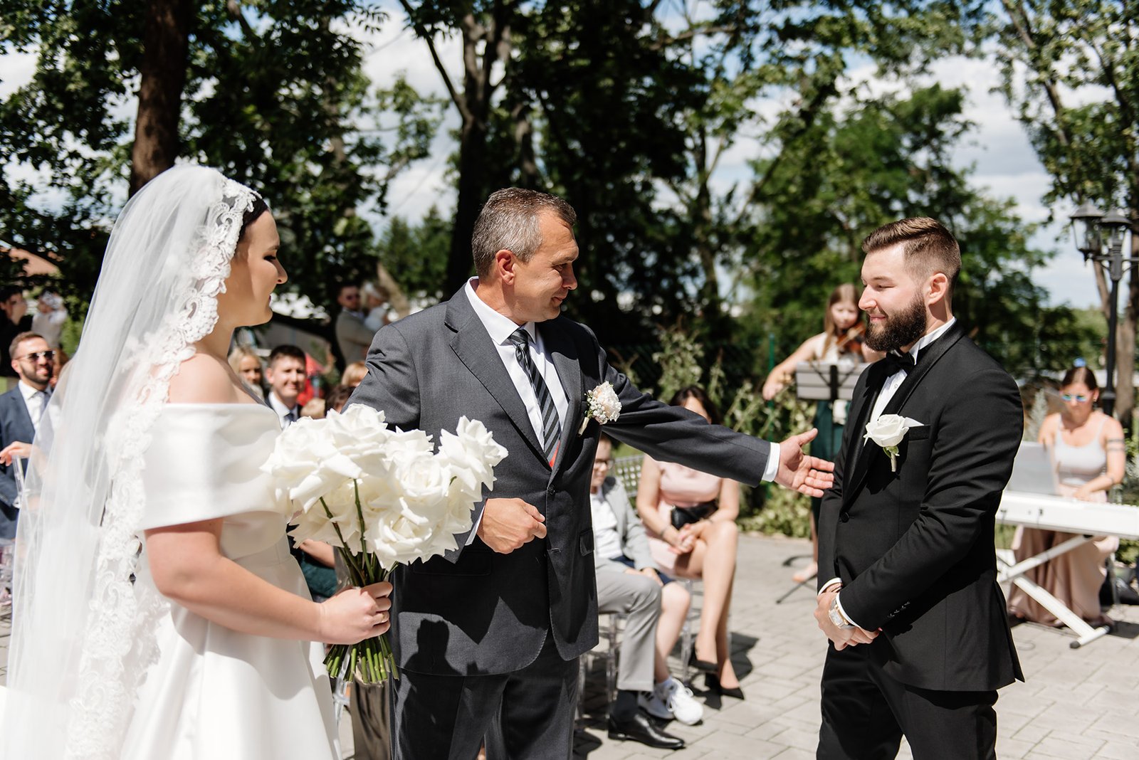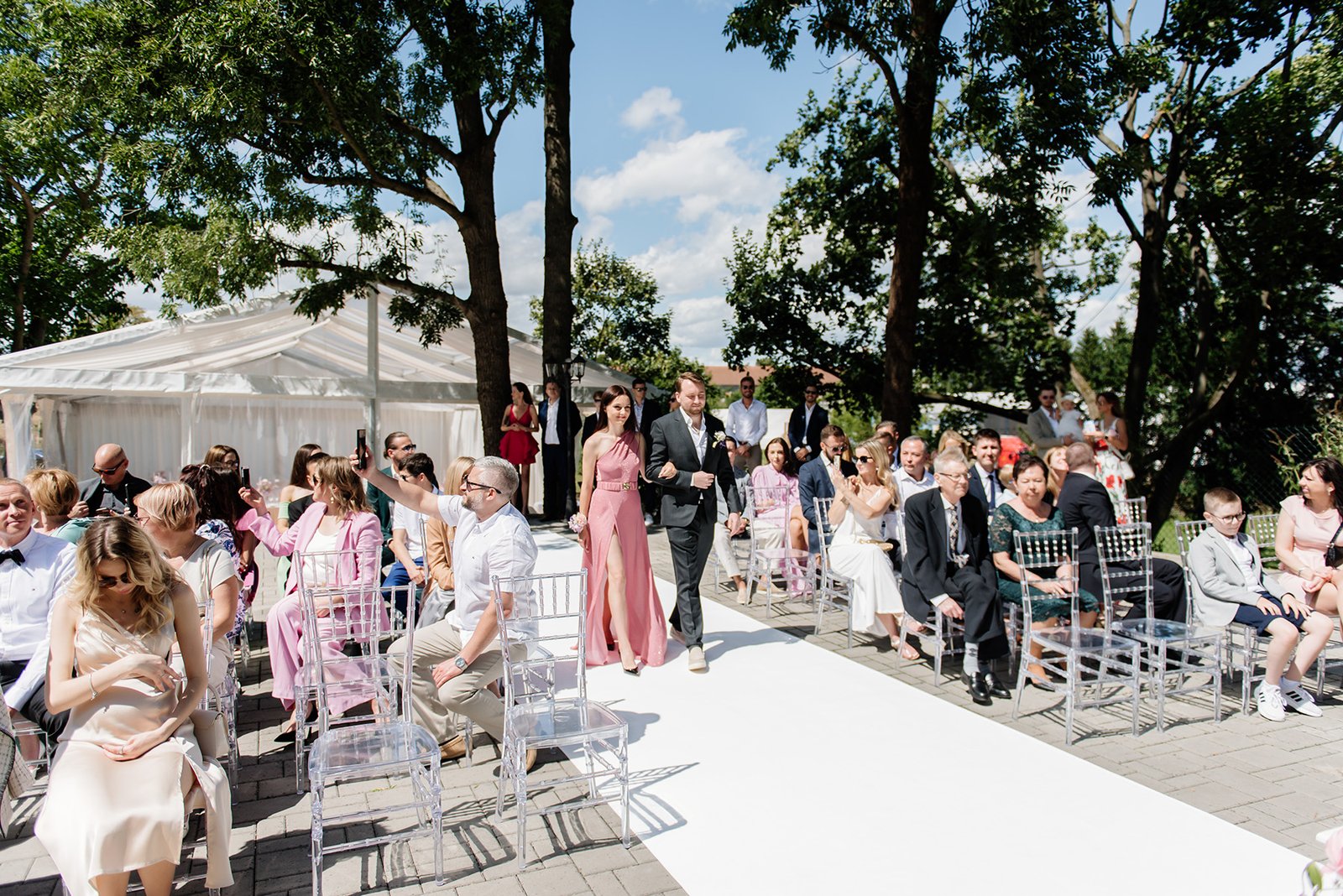 Miejsce ceremonii było jak z bajki – piękna sceneria ogrodu, delikatne dekoracje i ciepłe sierpniowe światło tworzyły magiczną atmosferę. Kristina, prowadzona przez ojca, wzruszyła wszystkich gości. Przysięga wypowiedziana wśród zieleni i kwiatów sprawiła, że każdy poczuł magię tej chwili. Uwielbiam uchwycić te ulotne momenty pełne prawdziwych emocji.