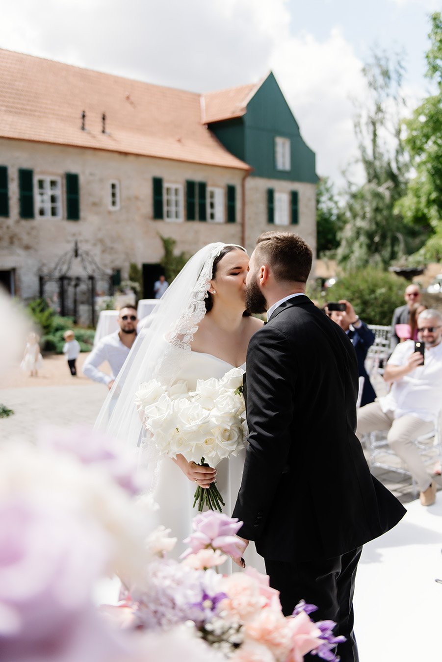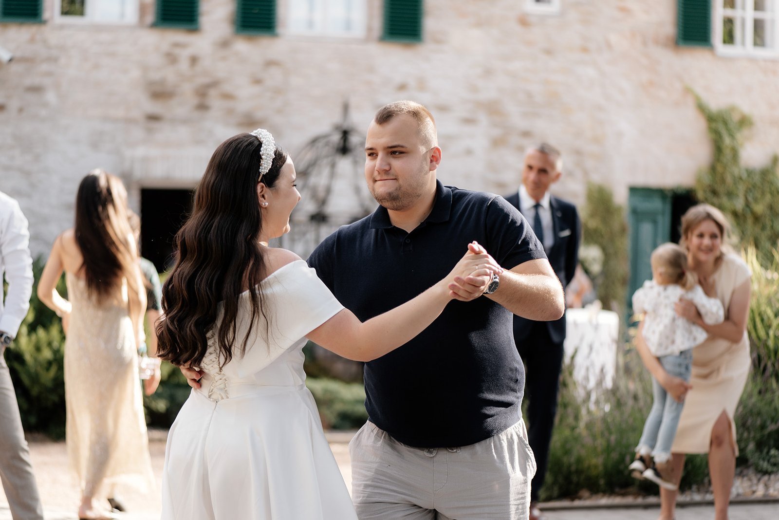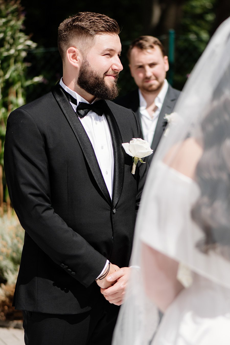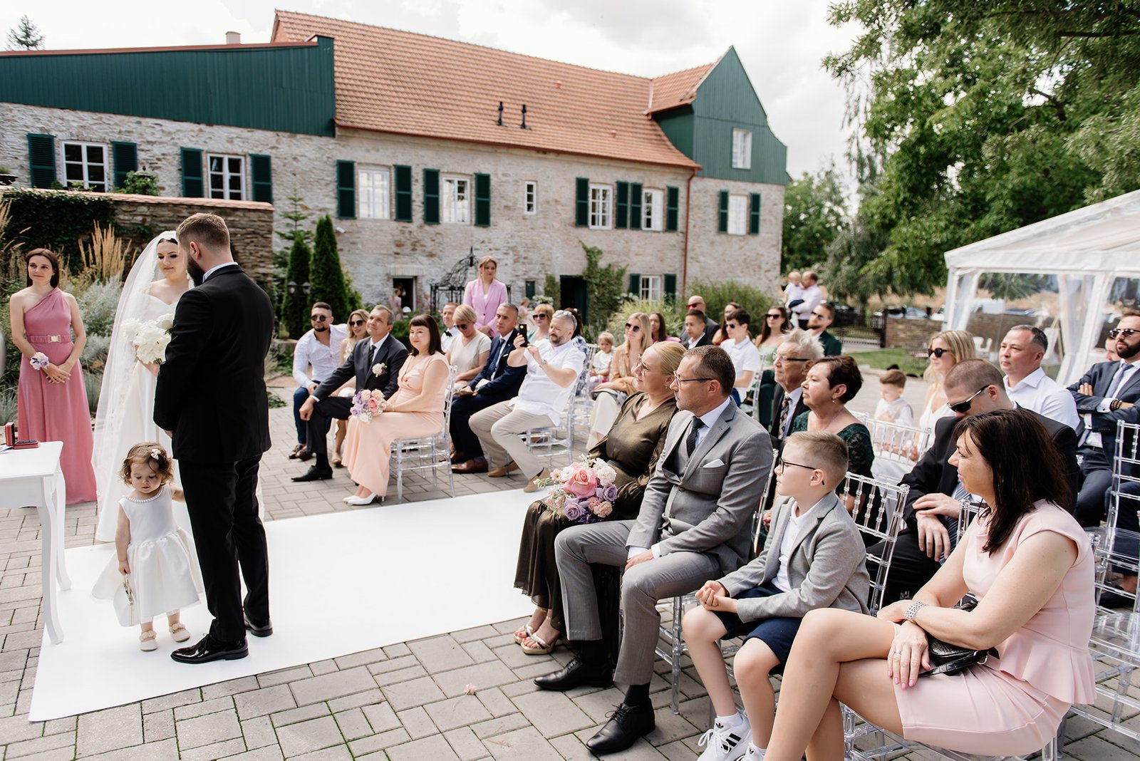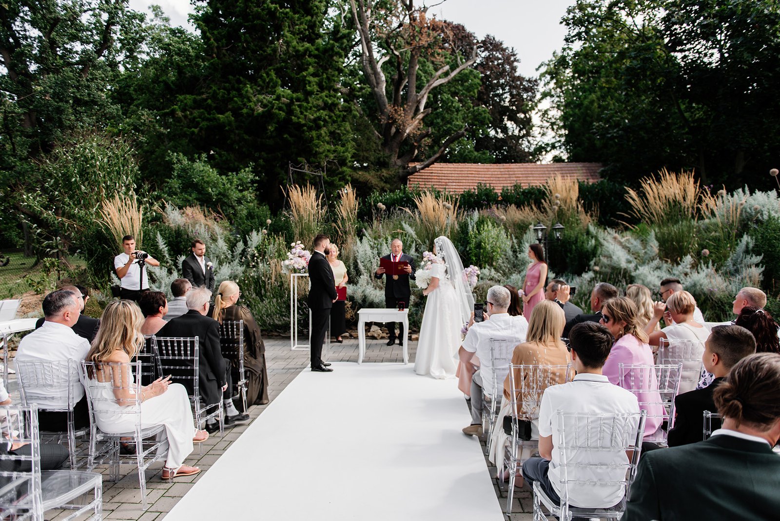 Miejsce ceremonii było jak z bajki – piękna sceneria ogrodu, delikatne dekoracje i ciepłe sierpniowe światło tworzyły magiczną atmosferę. Kristina, prowadzona przez ojca, wzruszyła wszystkich gości. Przysięga wypowiedziana wśród zieleni i kwiatów sprawiła, że każdy poczuł magię tej chwili. Uwielbiam uchwycić te ulotne momenty pełne prawdziwych emocji.