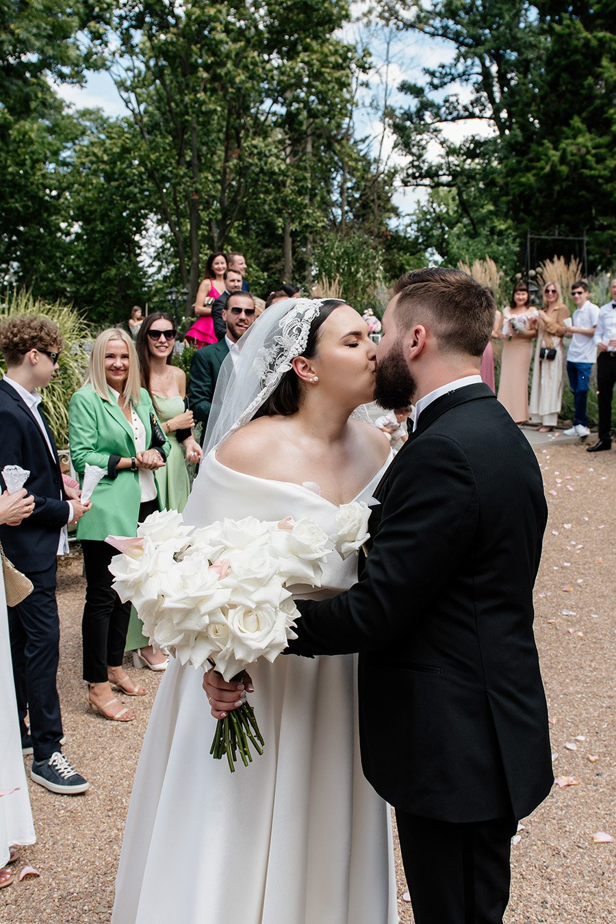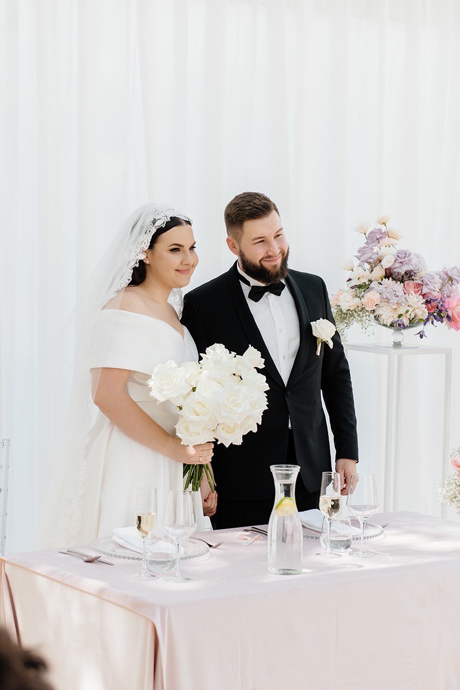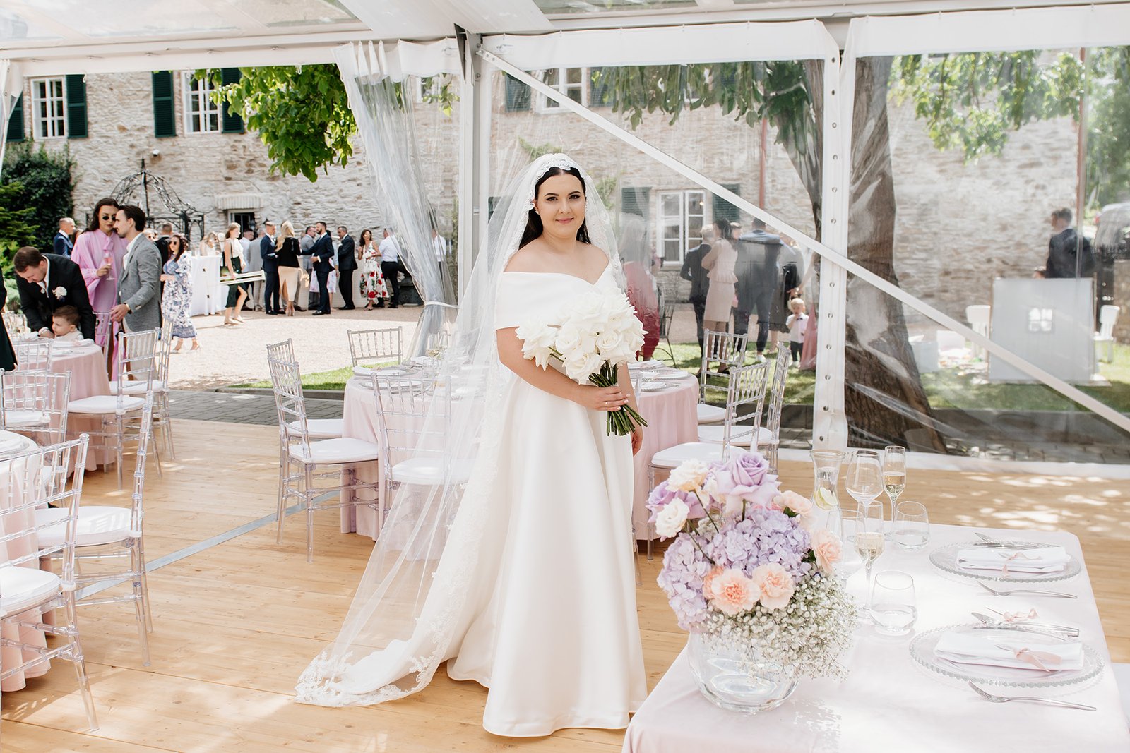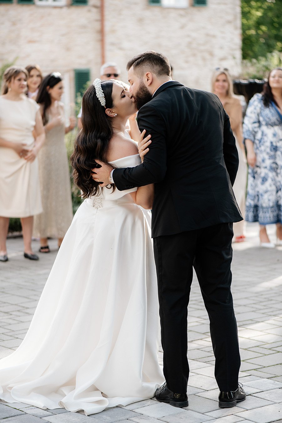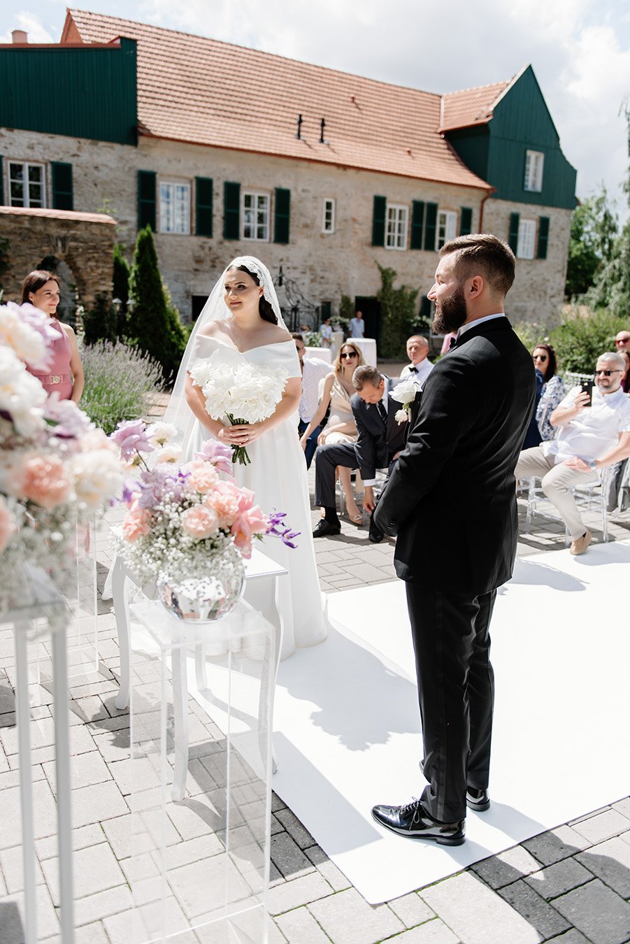 Miejsce ceremonii było jak z bajki – piękna sceneria ogrodu, delikatne dekoracje i ciepłe sierpniowe światło tworzyły magiczną atmosferę. Kristina, prowadzona przez ojca, wzruszyła wszystkich gości. Przysięga wypowiedziana wśród zieleni i kwiatów sprawiła, że każdy poczuł magię tej chwili. Uwielbiam uchwycić te ulotne momenty pełne prawdziwych emocji.