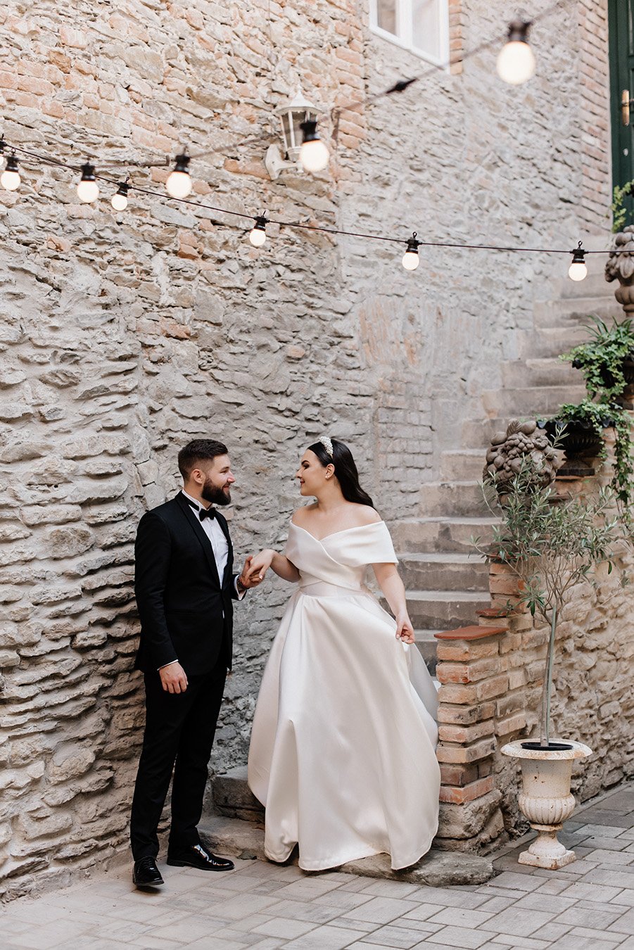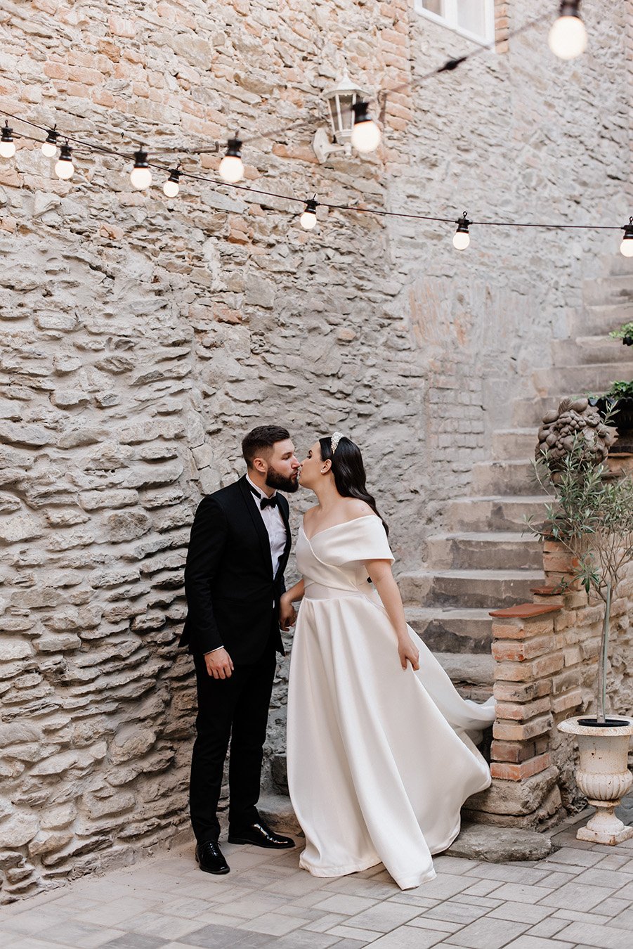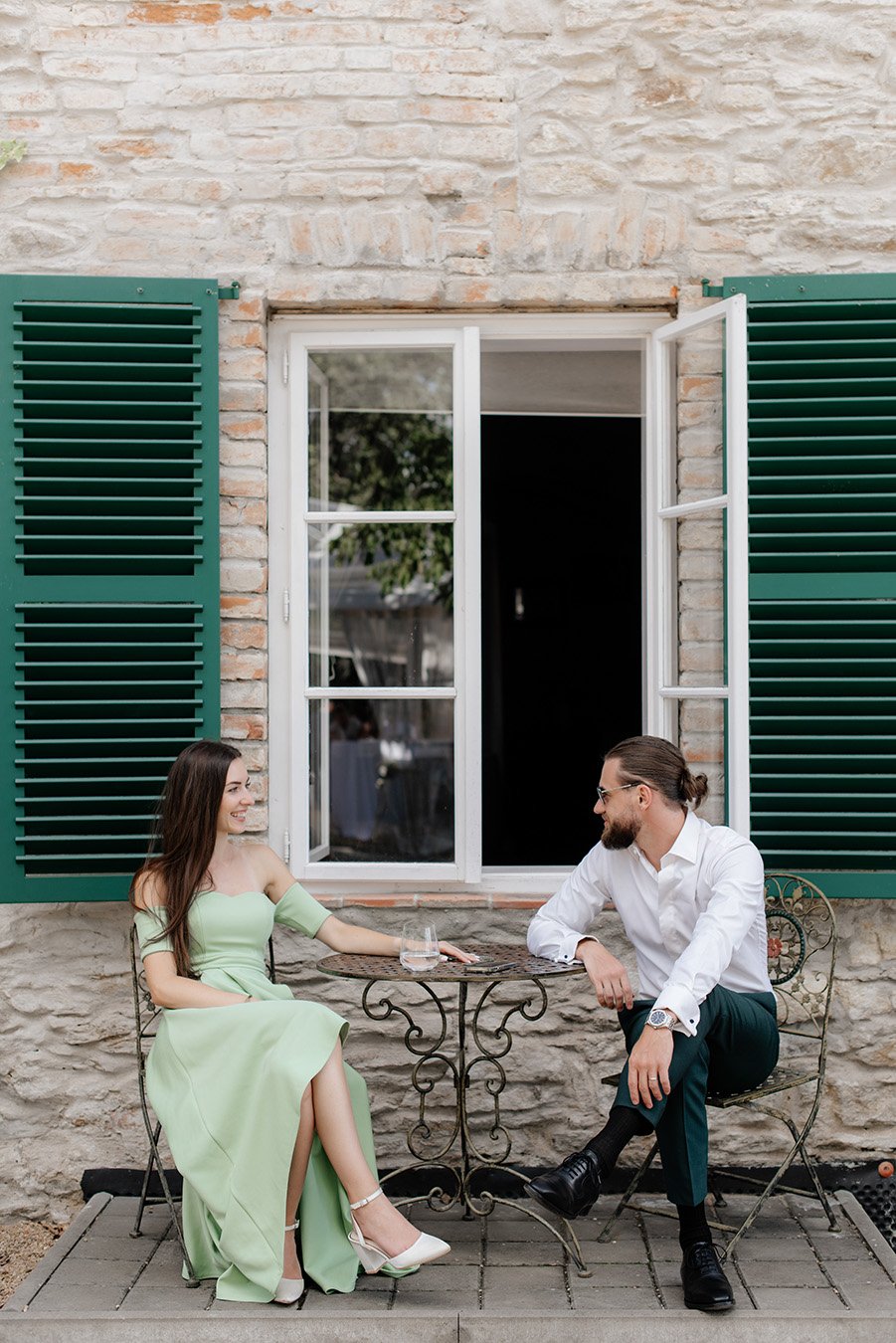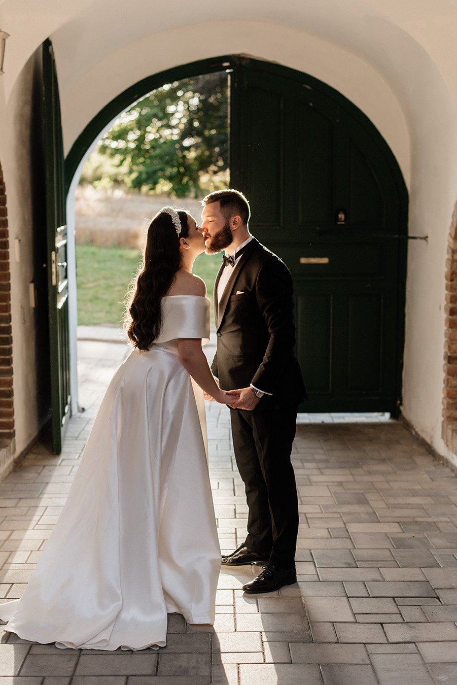 Po ceremonii i weselu, Kristina i David postanowili zrobić chwilę przerwy i udać się na zewnątrz, aby uchwycić wyjątkowy moment na tle zachodzącego słońca. Wieczorne światło nad willą tworzyło niesamowitą, romantyczną atmosferę. W promieniach złotego zachodu młoda para pozowała w objęciach, na tle malowniczej scenerii ogrodu i eleganckiej willi. To była chwila pełna intymności i miłości, kiedy świat wokół zdawał się zatrzymać, a każdy szczegół nabierał szczególnego znaczenia. Te zdjęcia stanowiły niezapomnianą pamiątkę, pełną magii i piękna, które będzie towarzyszyć im przez całe życie.