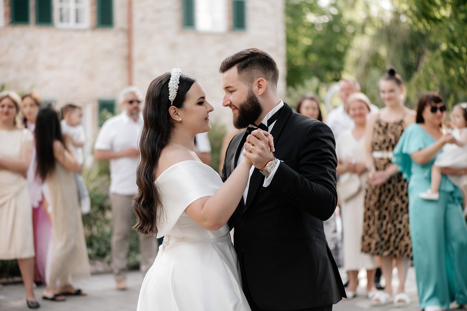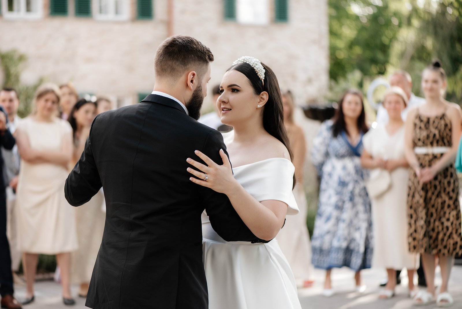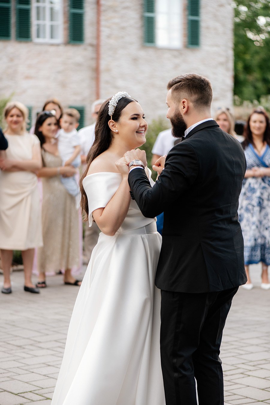Kristina i David rozpoczęli wieczór pierwszym tańcem, który oczarował wszystkich. Delikatne światło, romantyczna muzyka i ich pełne miłości spojrzenia sprawiły, że ta chwila była niczym z filmu. Uchwycenie takich emocji to dla mnie prawdziwa przyjemność i wyzwanie zarazem.