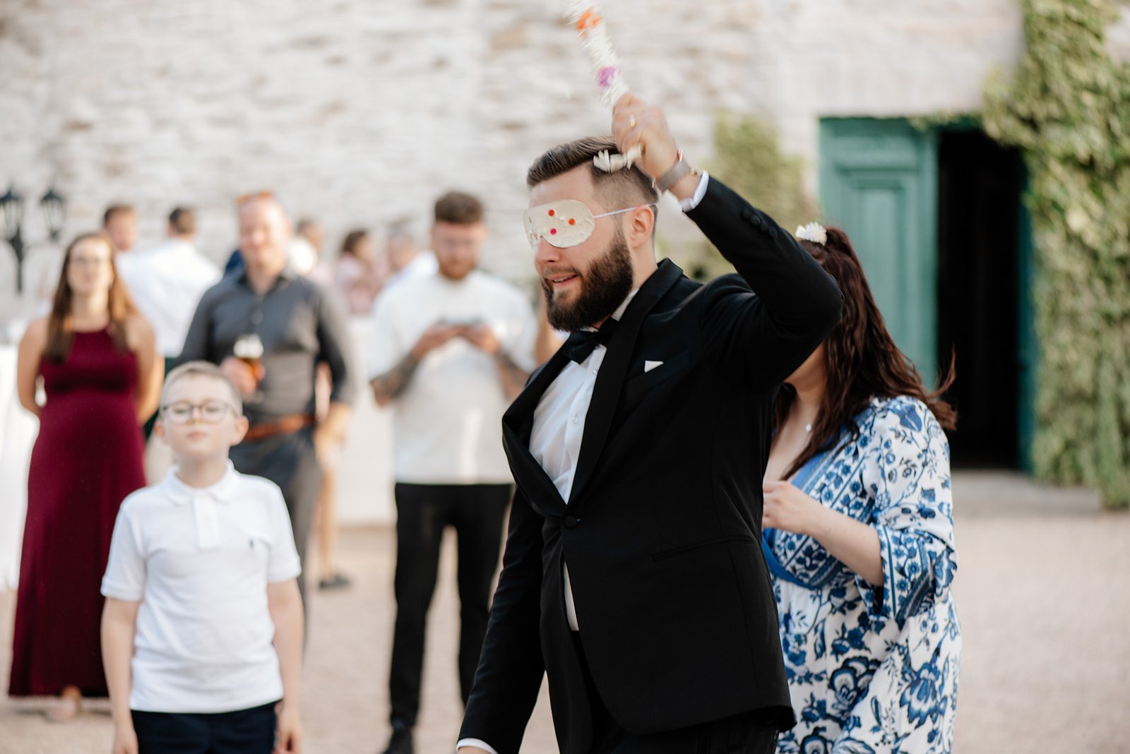 Nie mogło zabraknąć także zabawnego akcentu – tradycyjnego porwania Panny Młodej. Przyjaciele Davida porwali Kristinę, a Pan Młody musiał się wykazać, aby ją odzyskać. To momenty pełne śmiechu, spontaniczności i emocji, które zawsze dodają dynamiki reportażowi ślubnemu.